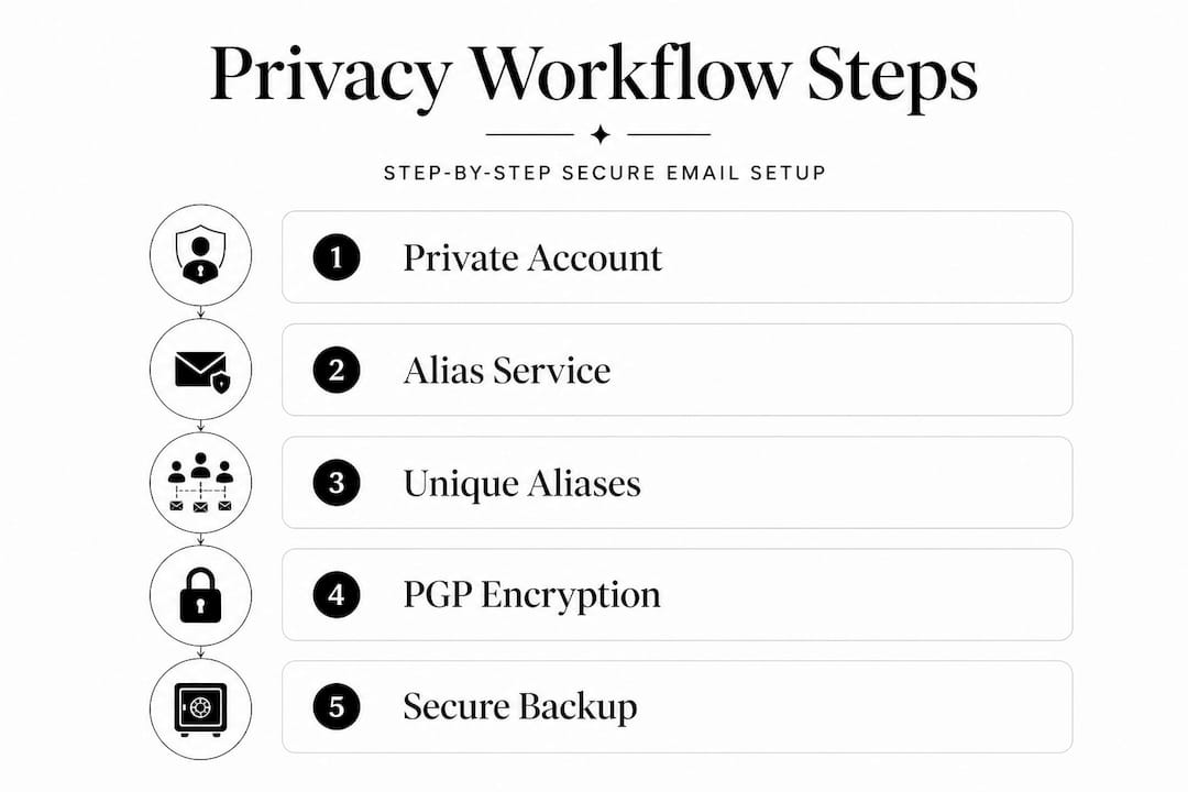 The smallest steps have the largest impact. Switching to privacy vs. convenience does not require a complete lifestyle overhaul. One alias for one service is a real improvement. One encrypted email is a real improvement. Build the habit gradually and the workflow becomes second nature.